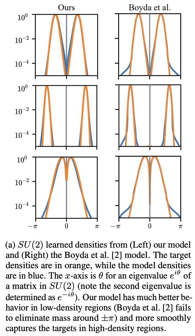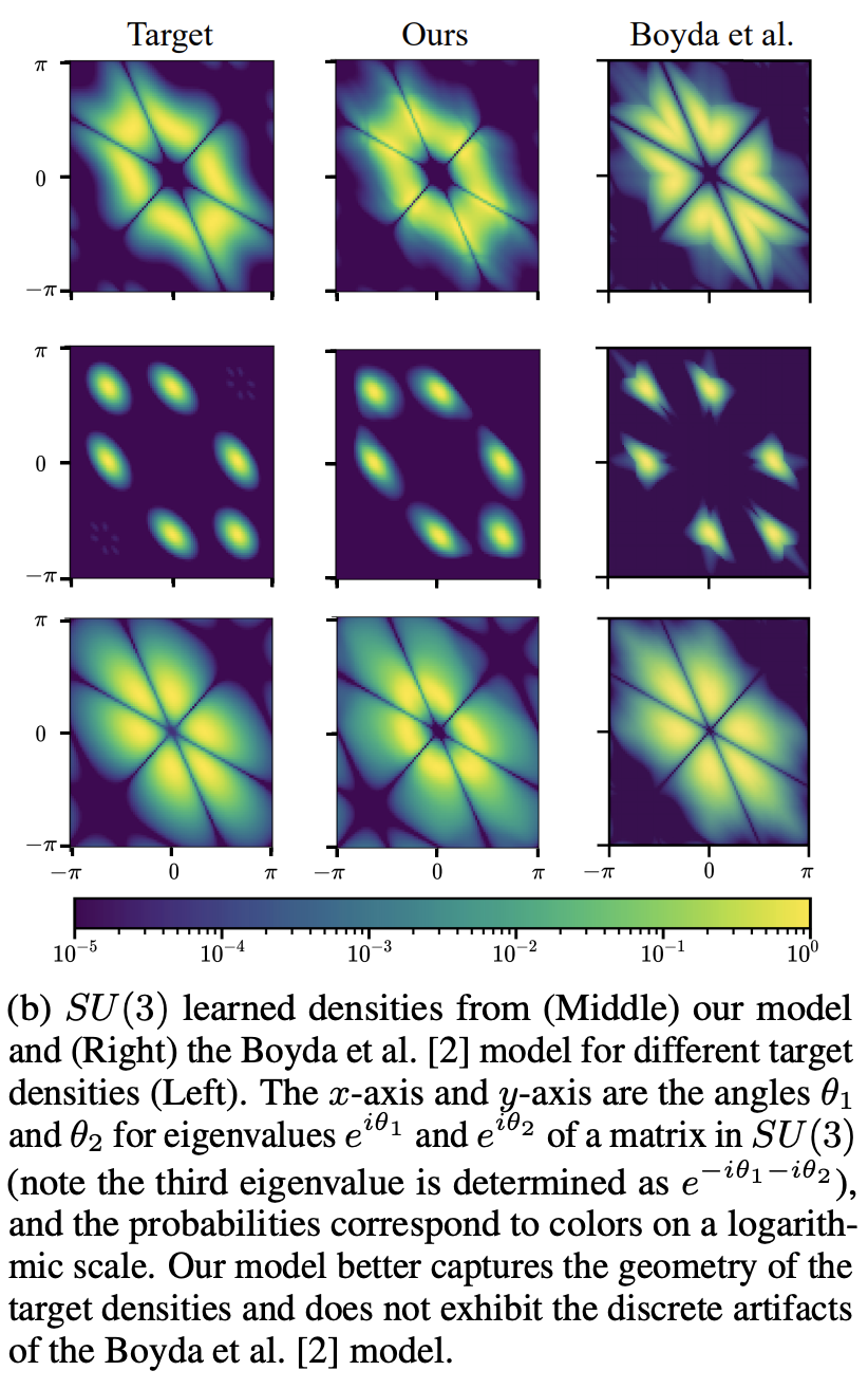 Below we have visualized how our equivariant manifold flows learn the boyda1 and boyda2 densities on SU(3) (first and second rows in the SU(3) figure above).