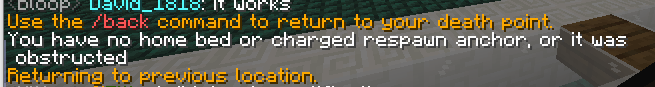 RE: #3836 (comment) Is there any way to disable this message from appearing when you die and don't have a home bed or respawn anchor? I just want to silently teleport players to spawn if those aren't present. The message only occurs when special respawn condition settings are enabled. When you don't use anchors / bed home and just force players back to spawn, there is no message on death. |