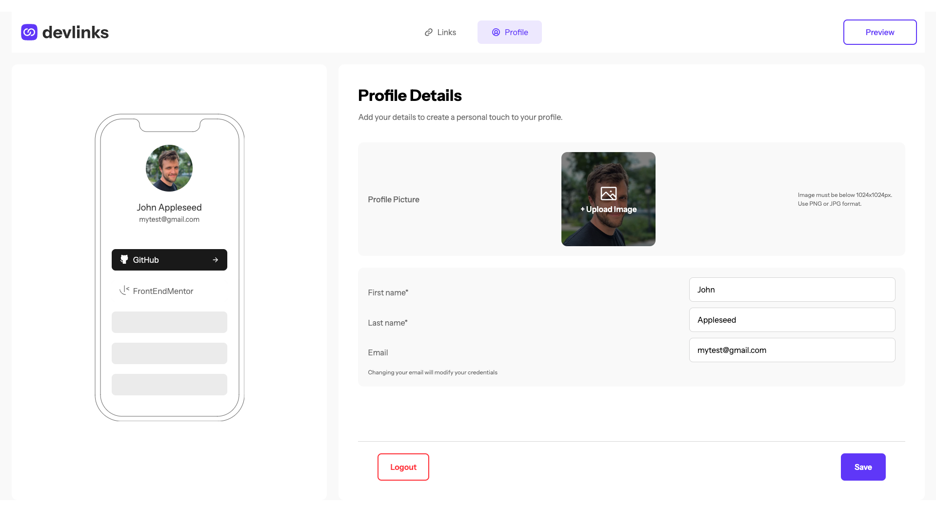 - You can upload a profile picture, this image must have a height and width less than 1024 pixels