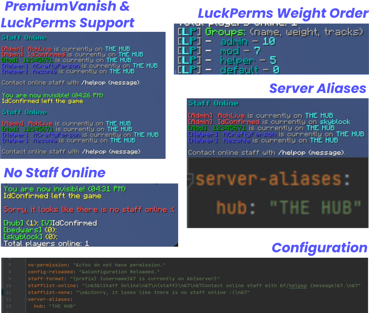 - Optional PremiumVanish and LuckPerms Support. (Both currently a requirement)