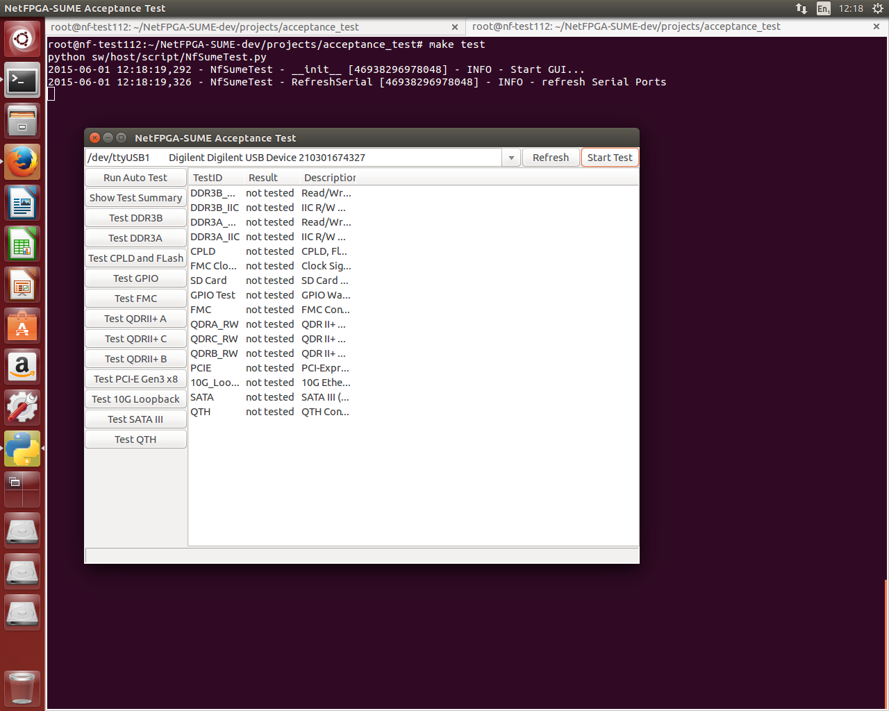 Note : Please make sure that you have followed the installation procedure as mentioned in the Reference Operating System Setup Guide before running the test (e.g. sufficient privileges to access serial ports and a patched pySerial), and make sure to have root privileges.
