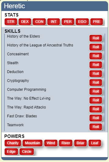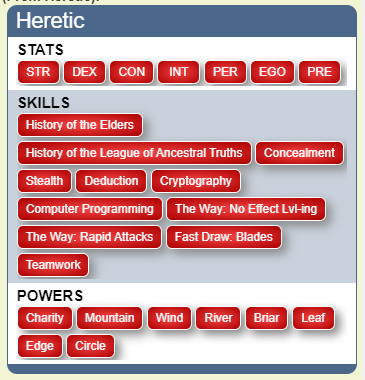 Here are a couple of options for how to construct the menu. This first option (for the same character, Heretic), uses only row types of row (no elem):