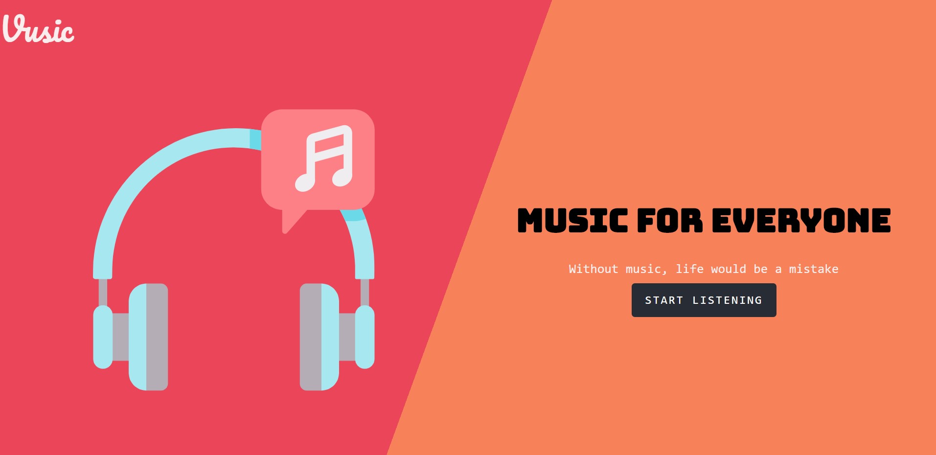Vusic | The music destination you want. A music app made with the help of React.js. TECHNOLOGY USED React.js react-router react-redux material-ui/core material-ui/icons context API scss Attribution Icons made by Freepikfrom Music by NCS Please make sure you fork the repository