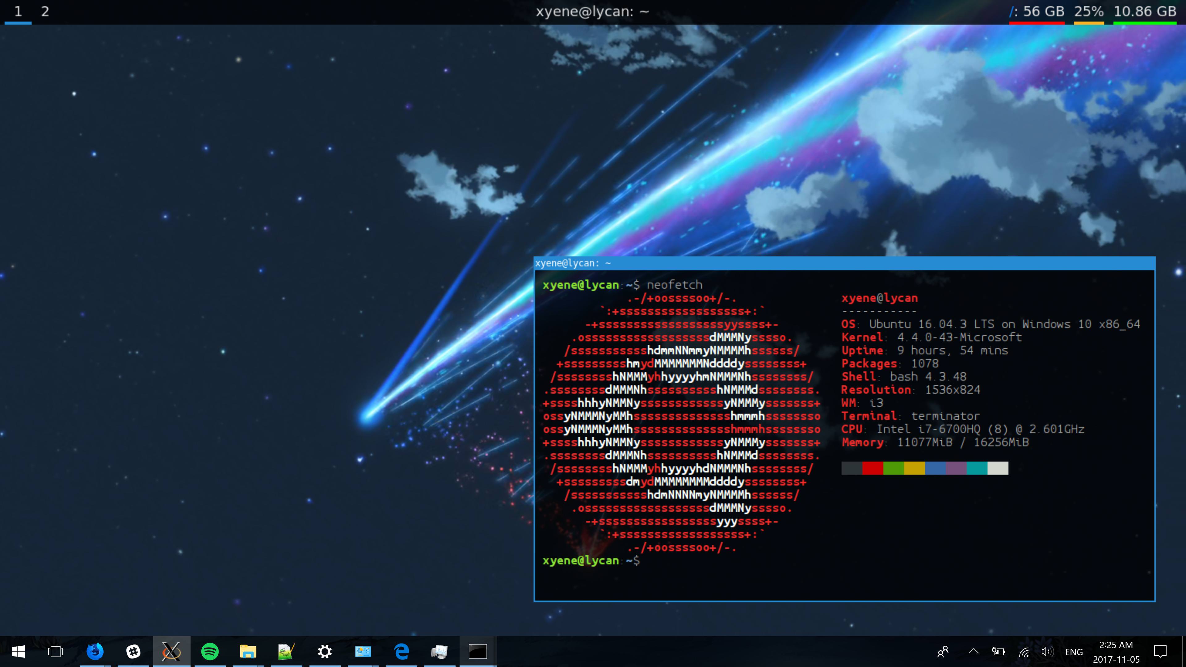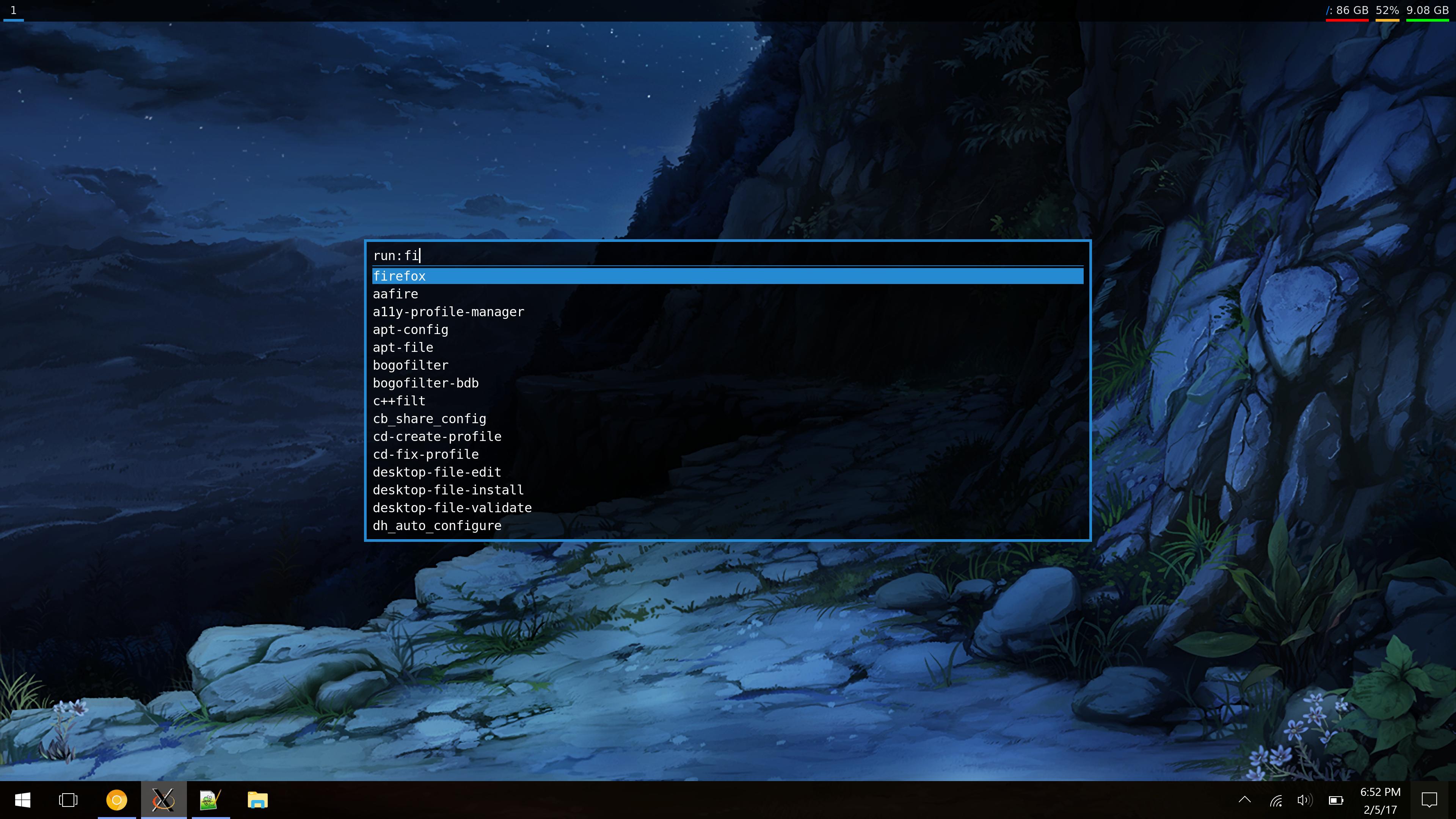 My dotfiles for running an i3-based environment within WSL, working as of Windows Fall Creators Update (version 1709).