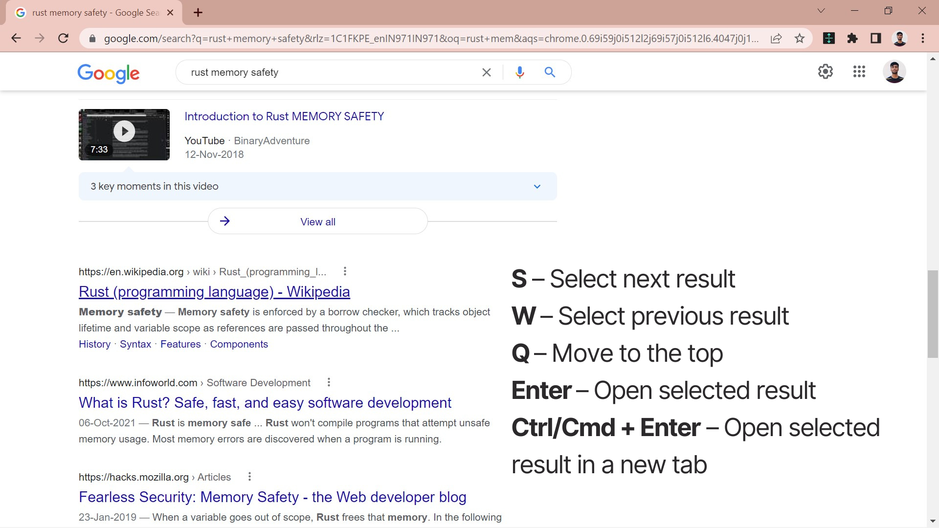 - Ctrl/Cmd + Enter - Open the selected result in a new tab