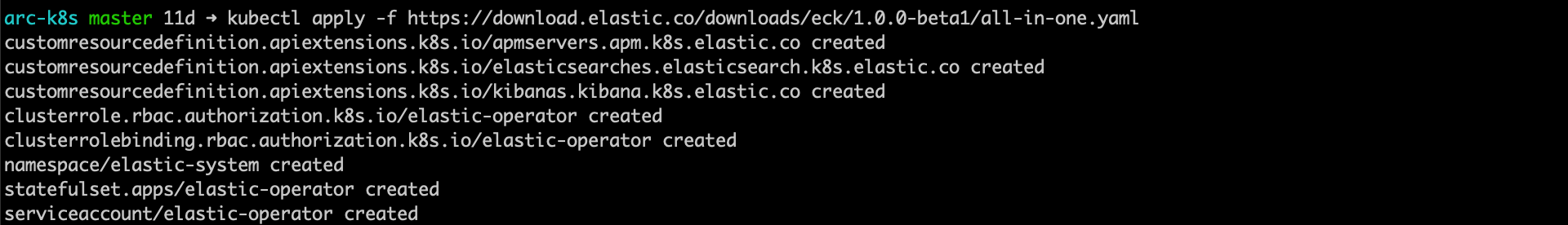 kubectl apply -f https://download.elastic.co/downloads/eck/1.1.2/all-in-one.yaml