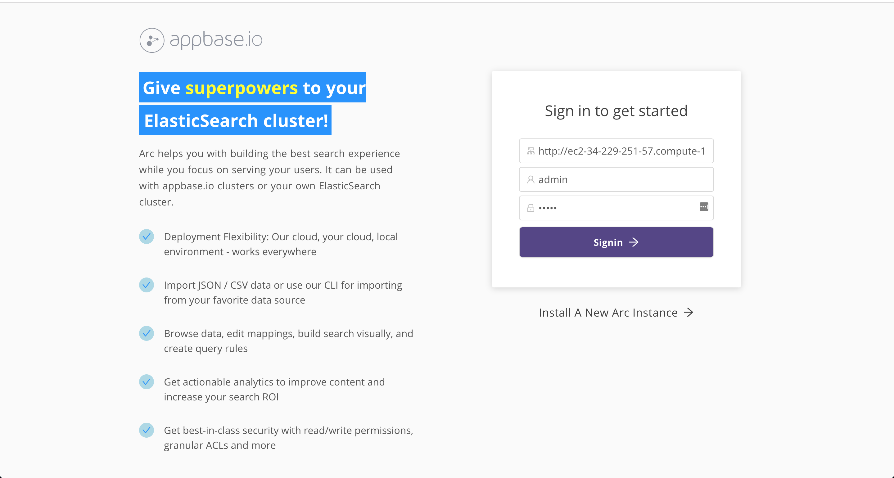 APPBASE_IDES_CLUSTER_URLUSERNAMEPASSWORD