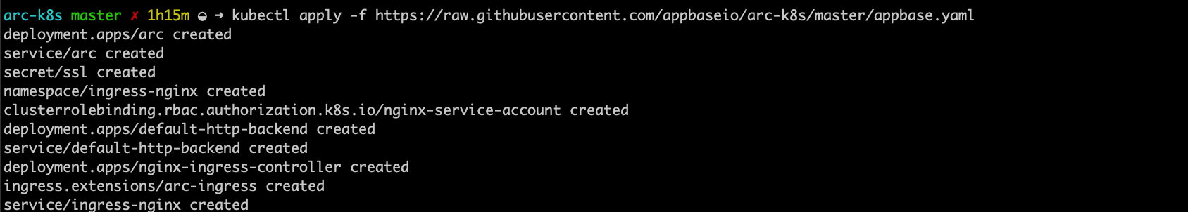 kubectl apply -f https://raw.githubusercontent.com/appbaseio/arc-k8s/master/appbase.yaml