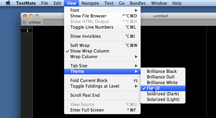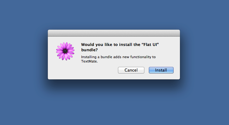 Click yes. Open a document in TextMate 2. Choose Flat UI from the theme menu. Now you are all set.