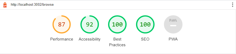 I let Google Lighthouse run over my application to check for it's performance, accessibility, use of best practices and SEO optimization. You can view the results right below this paragraph.