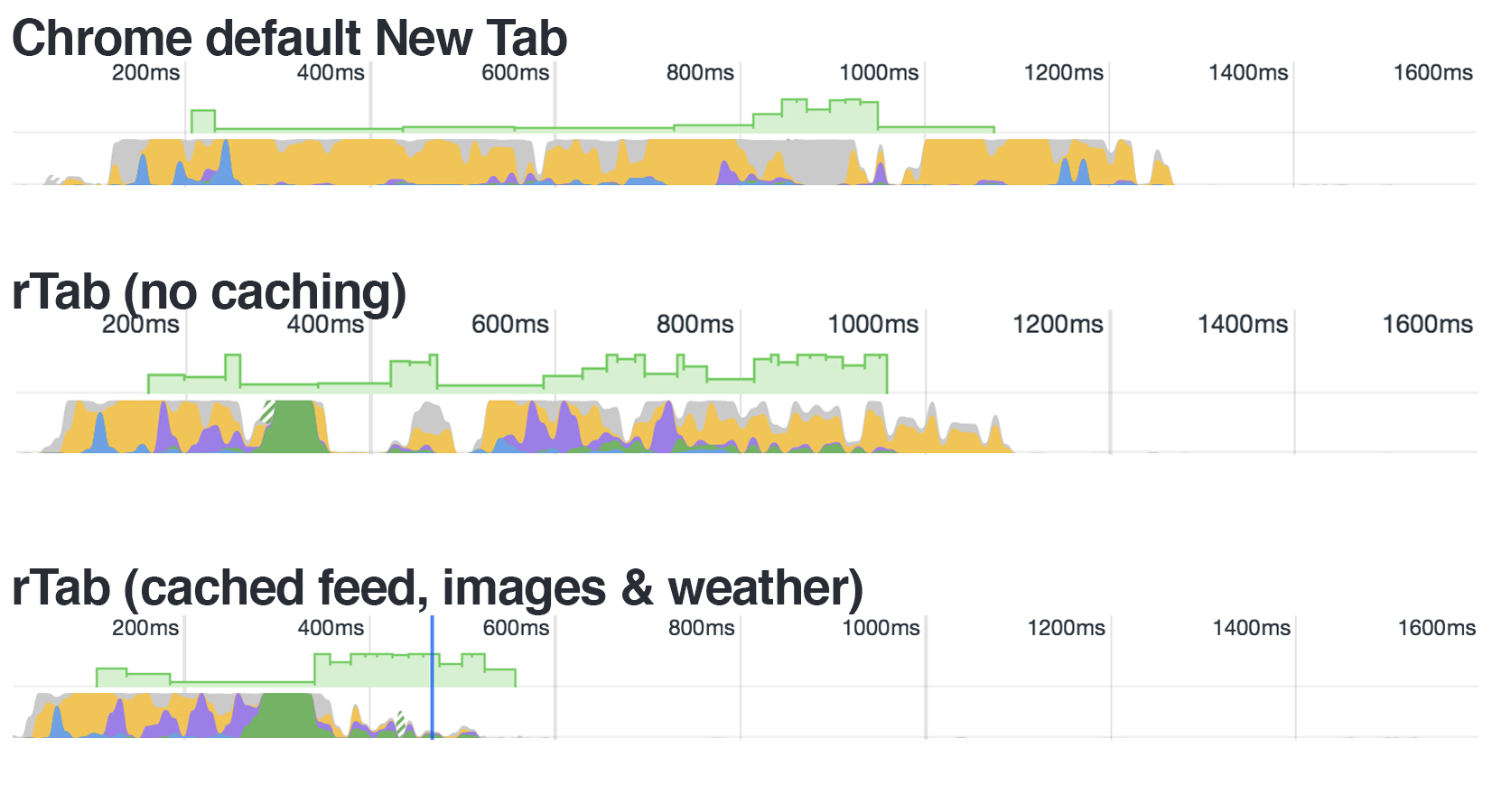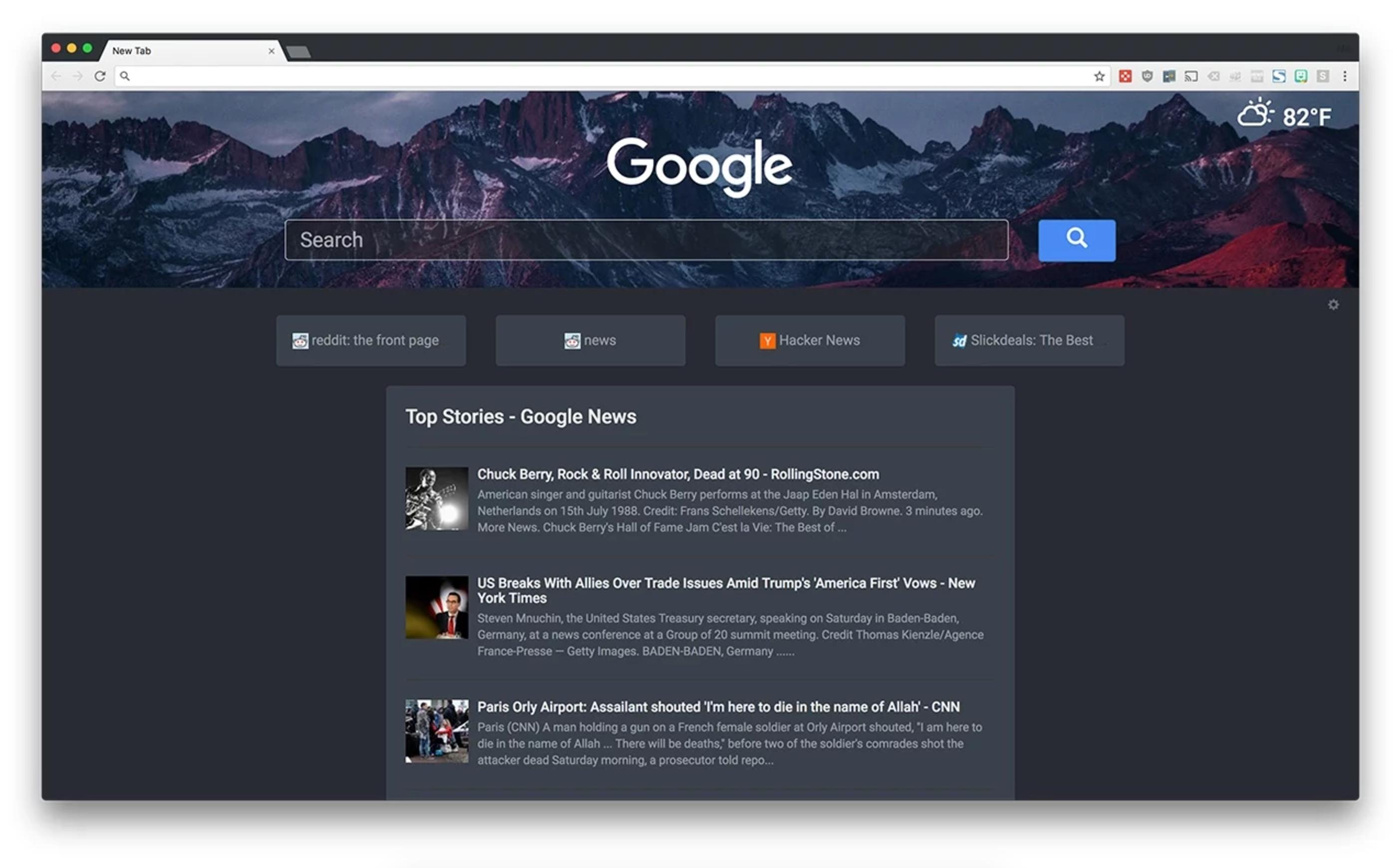 - Loads faster than the default Chrome new tab page