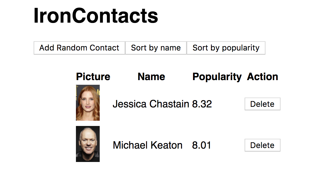 Unfortunately, this contact list isn't really production ready. This is the movie business! It's got to sparkle! Add some nice CSS to make the app "pop".