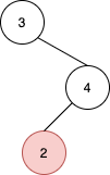 Input: root = [3,null,4,2], u = 2 Output: null Explanation: There are no nodes to the right of 2.
