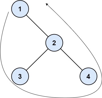Input: root = [1,null,2,3,4] Output: [1,3,4,2] Explanation: - The left boundary is empty because the root does not have a left child. - The right boundary follows the path starting from the root's right child 2 -> 4. 4 is a leaf, so the right boundary is [2]. - The leaves from left to right are [3,4]. Concatenating everything results in [1] + [] + [3,4] + [2] = [1,3,4,2].