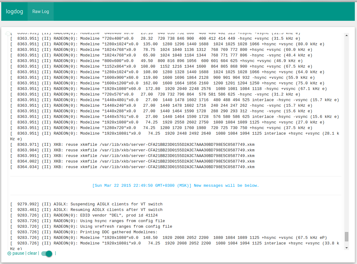 $ logdog --config=config.ymlYou can run watching and viewing parts separately: