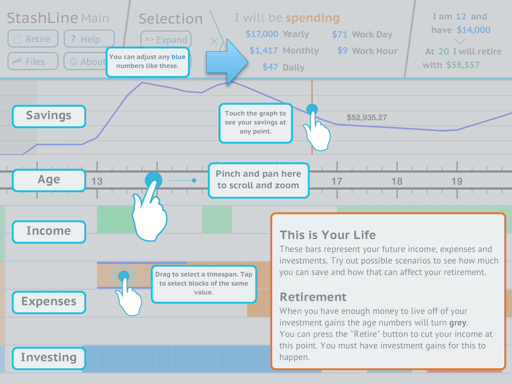 StashLine is an IOS app for long term personal finance planning and simulation. For me it was a challenge to make something that was polished, complete, visually appealing and well designed. Not to mention that I wanted it as a useful tool for myself. It's been reasonably popular with around 7500 lifetime downloads.