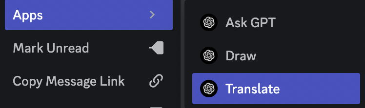 Context menu commands - Allow people to prompt GPT and DALL-E directly by right clicking a message: